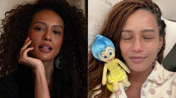 “Dormi assim, exausta, mas com a Alegria no comando!”, brincou a artista, referindo-se à pelúcia da personagem Alegria, da animação Divertida Mente.