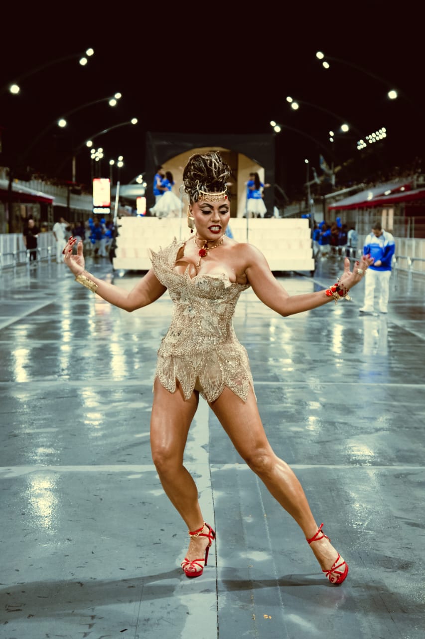 No desfile, a missão dela será apresentar a escola ao público e aos jurados com uma performance mais controlada, marcada por poses, gestos e movimentos calculados, sem abrir mão da essência do samba.